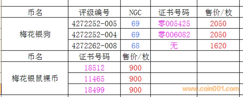售;1994年梅花銀狗3枚 ..