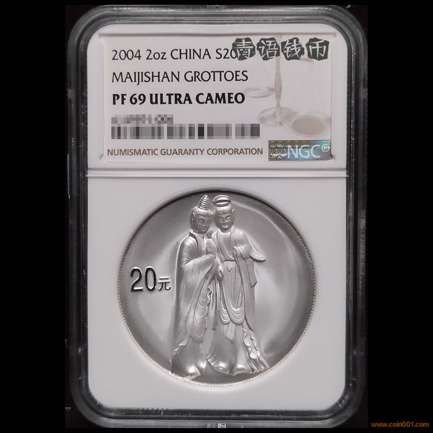 2004年中國石窟藝術(shù)麥積山2盎司精制銀幣NGC PF69 / 2650
