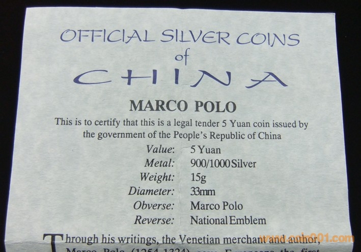 中國(guó)1992年馬可波羅5元 ..