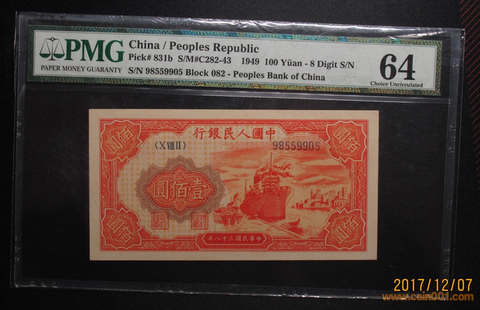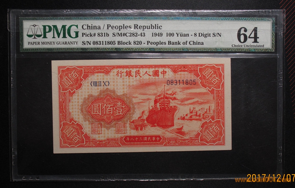 一版PMG64紅輪船3張, ..