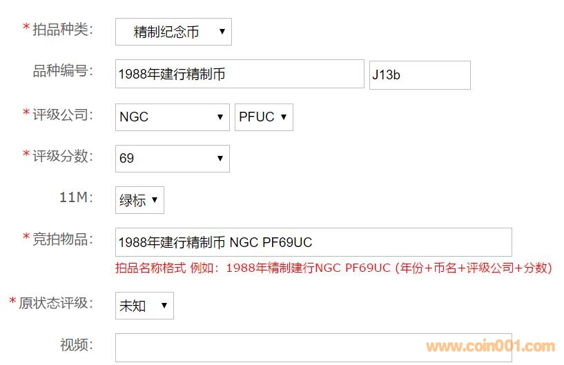 網(wǎng)站收到多位會(huì)員的反饋意見,目前的拍賣標(biāo)題幣名,版別表述參差不齊,很多會(huì)員將拍品說明全寫在標(biāo)題上,標(biāo)題越來越長,網(wǎng)站決定即日起對(duì)現(xiàn)代拍賣標(biāo)題統(tǒng)一規(guī)范,具體格式如下:
