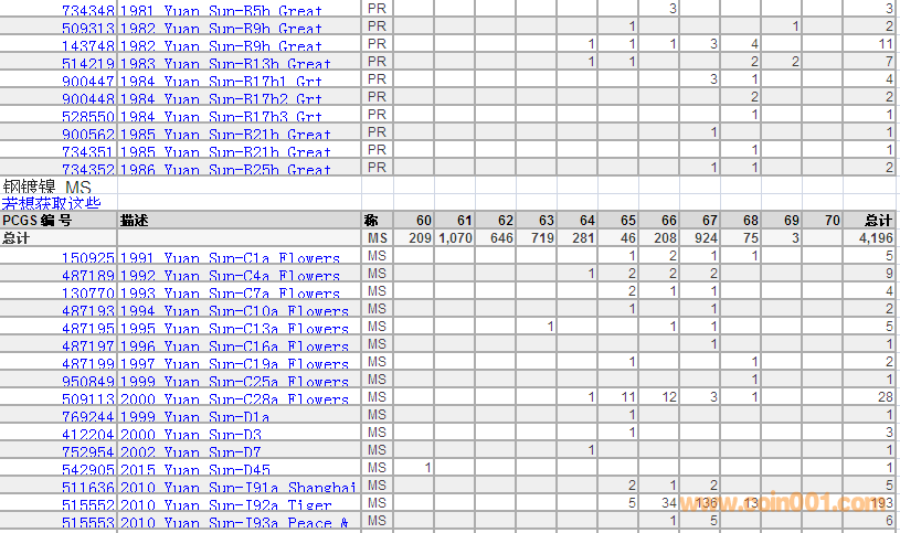 PCGS硬幣評(píng)級(jí)數(shù)量報(bào)告 ..
