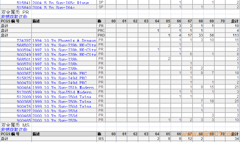 PCGS硬幣評(píng)級(jí)數(shù)量報(bào)告 ..