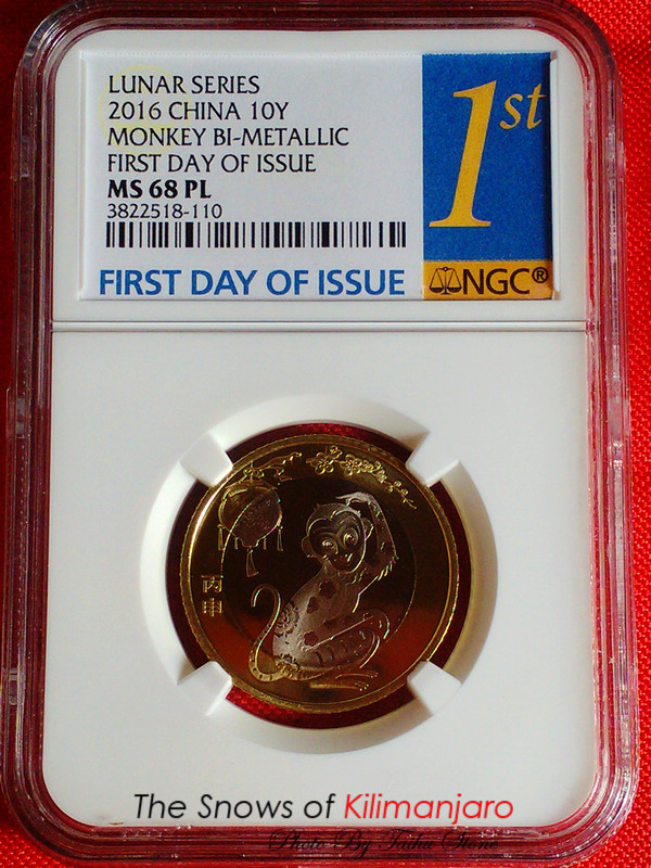 由于二羊沒有首日金藍(lán)標(biāo),所以配二猴首日金藍(lán)標(biāo),首年金標(biāo)將是不二選擇,或許也是NGC為廣大生肖幣愛好者特意設(shè)計。