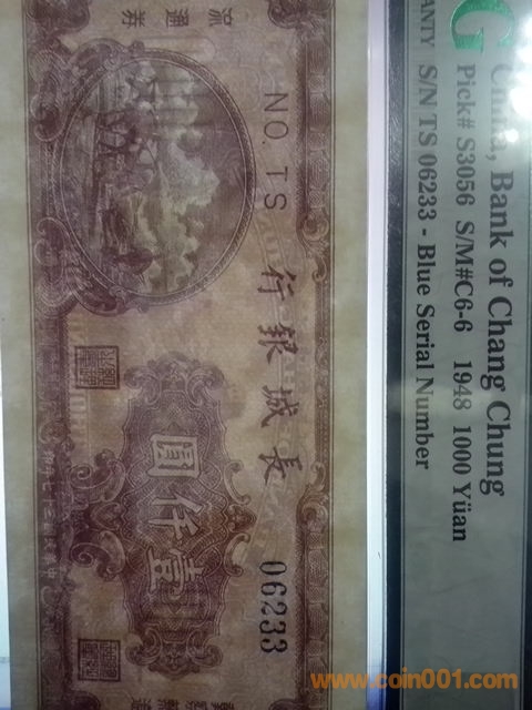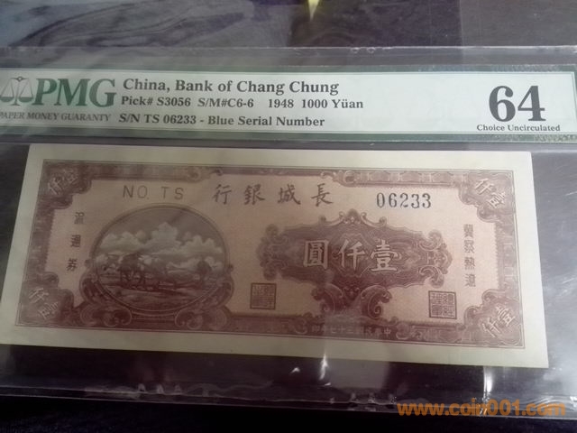 稀少存世長(zhǎng)城銀行,早期雙馬耕地壹仟元,已知評(píng)級(jí)冠軍分?jǐn)?shù),64分極難得,菱形防偽水印版4000