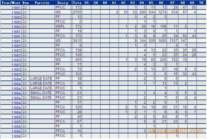 NGC硬幣評(píng)級(jí)分?jǐn)?shù)分布 ..