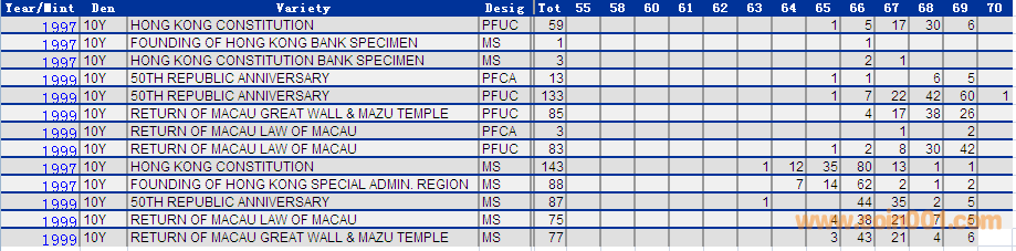 NGC硬幣評級分數(shù)分布 ..