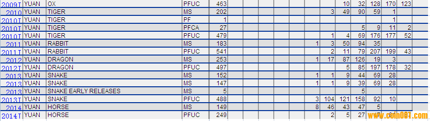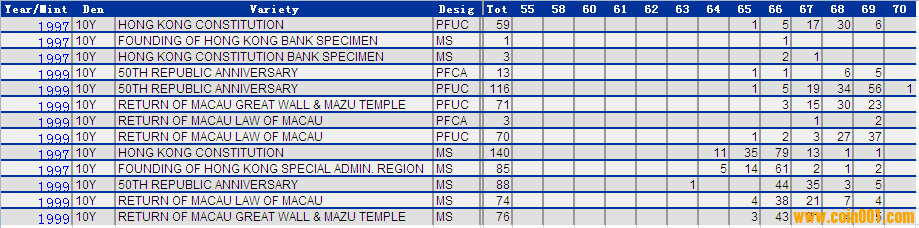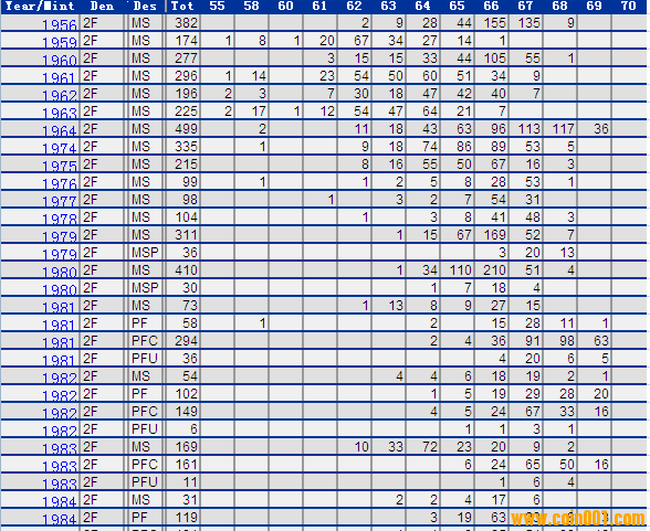 NGC硬幣評級分?jǐn)?shù)分布 ..