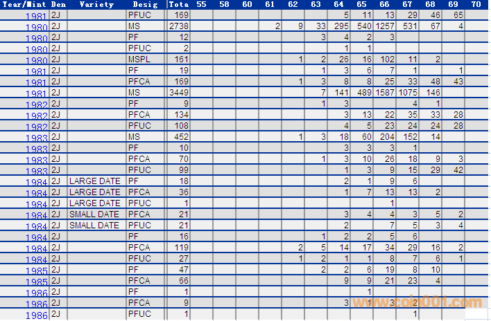 NGC硬幣評級分數(shù)分布 ..