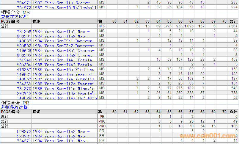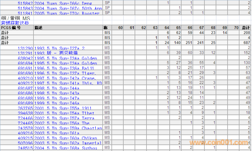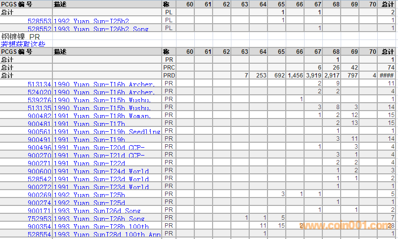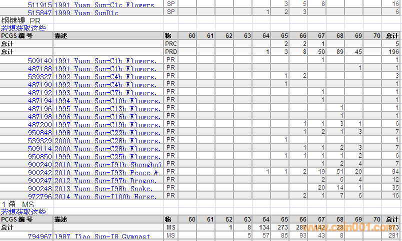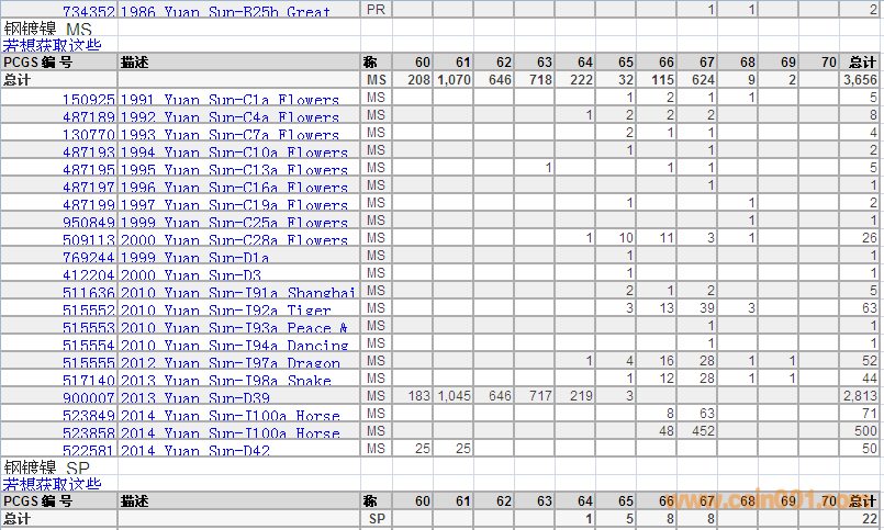 PCGS硬幣評級分數(shù)分布 ..