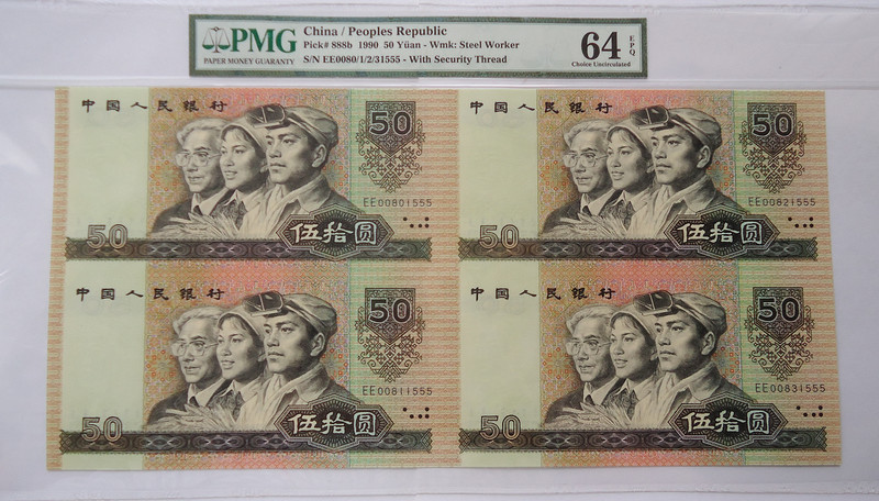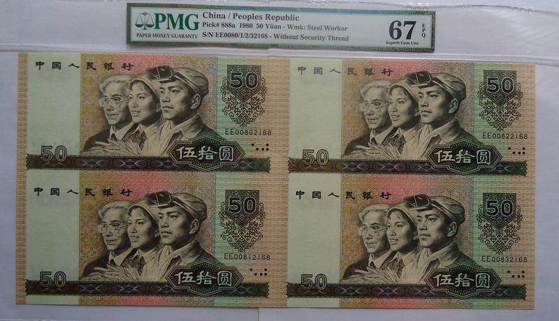 尤其是8050四連體鈔 是連體鈔唯一 存在大量裁切的 屬于消耗量最大的連體品種!存世量還低于流通鈔 很多都已經(jīng)裁切了EE單張去配第四版人*民*幣大全套了,8050四連體絕對是性價比之王!靚號高分稀罕!