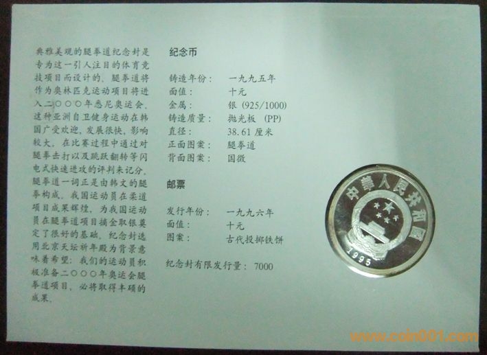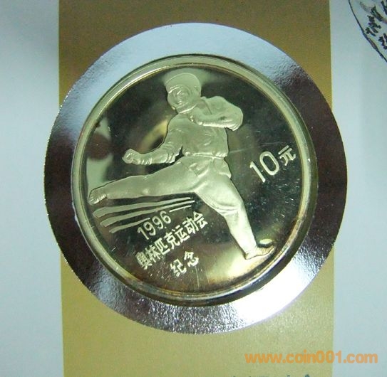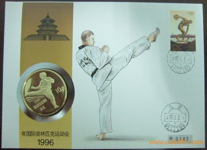 中國1996年奧林匹克運(yùn)動(dòng)會(huì)跆拳道10元精制紀(jì)念銀幣封 960元