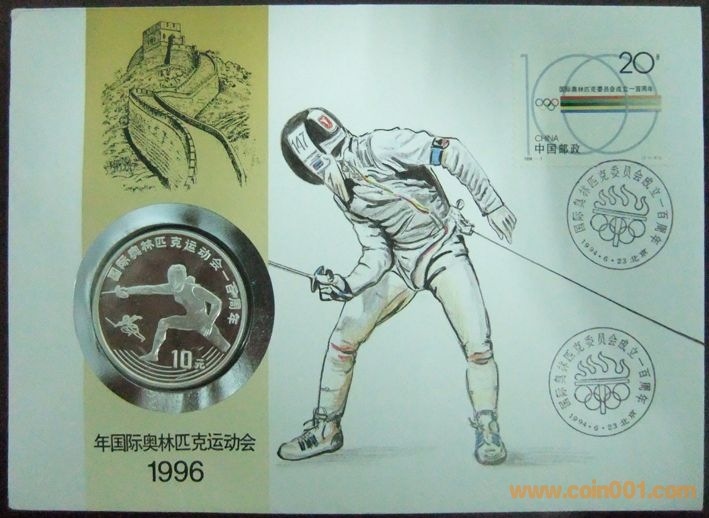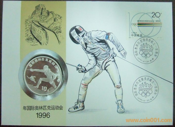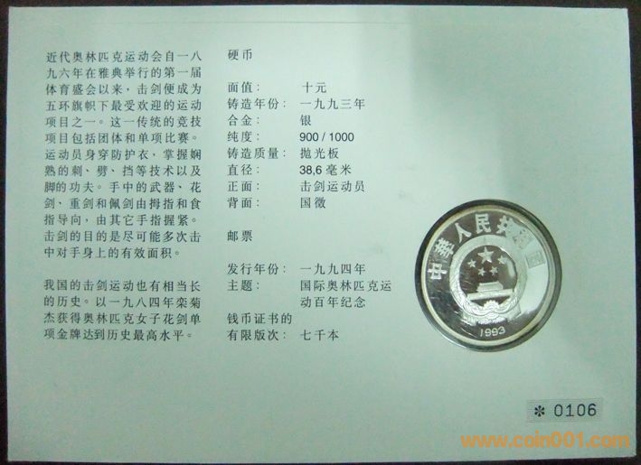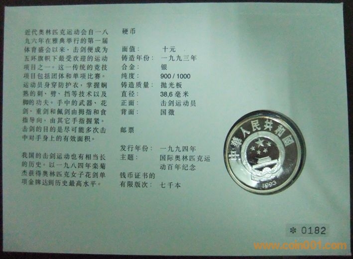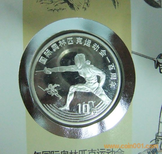 中國國際奧林匹克運(yùn)動(dòng)會(huì)一百周年擊劍10元精制紀(jì)念銀幣封2枚 800元