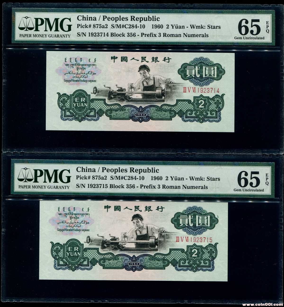 【PMG65分EPQ】車工兩連號(hào)絕品