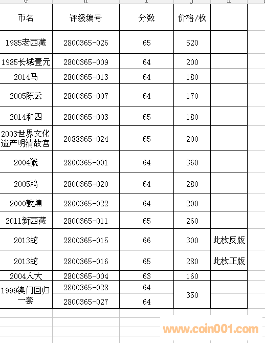 評級普通(精制)紀念幣交易