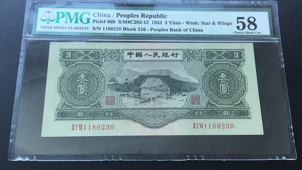 PMG58分二版綠叁元,全 ..