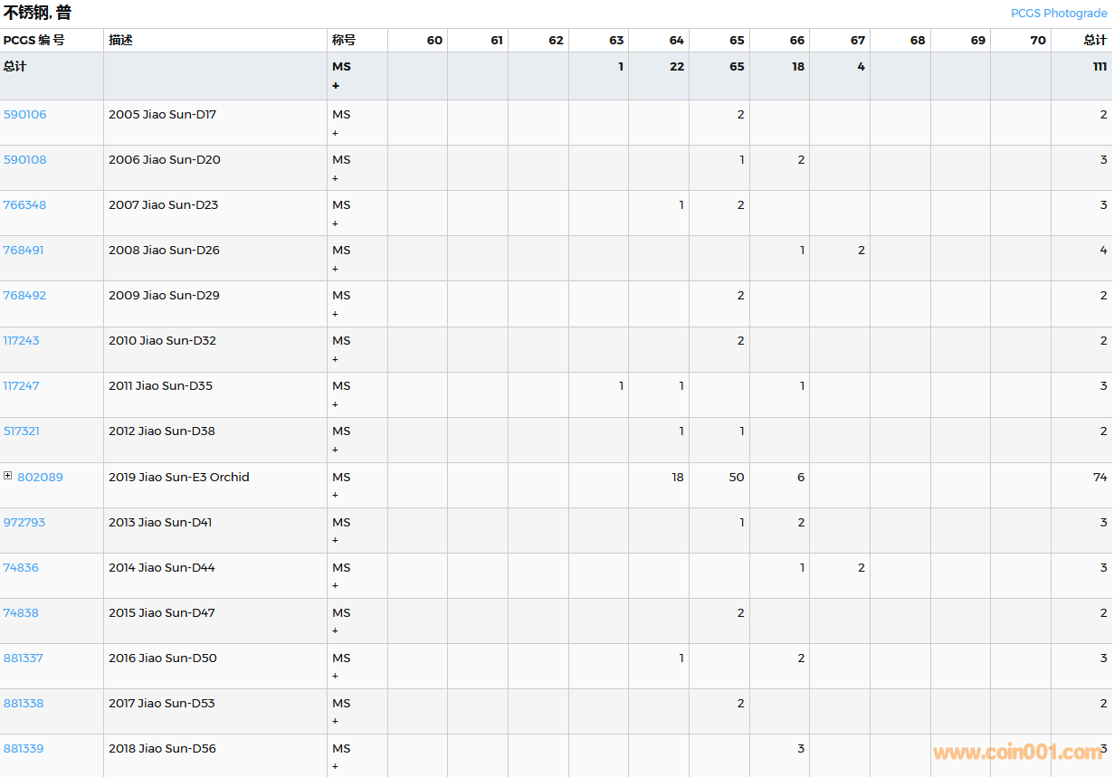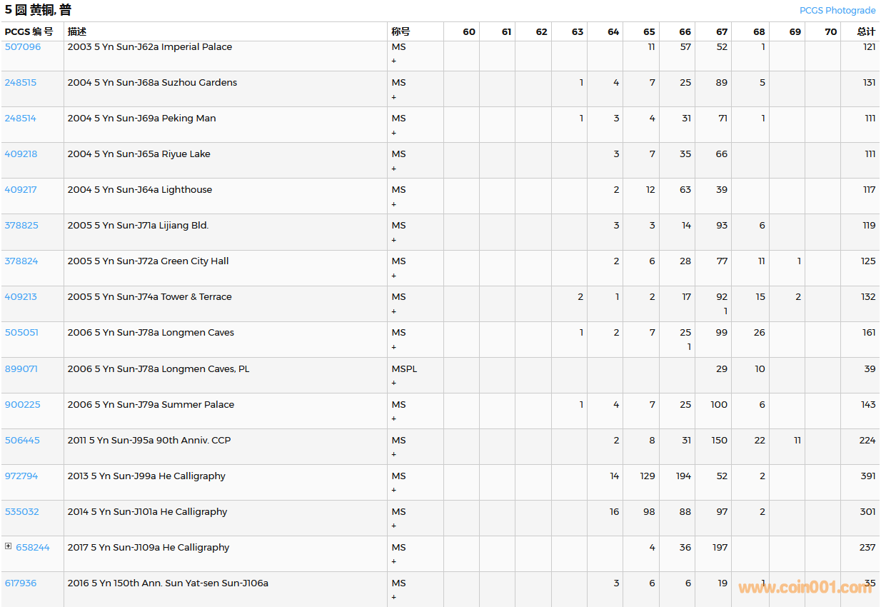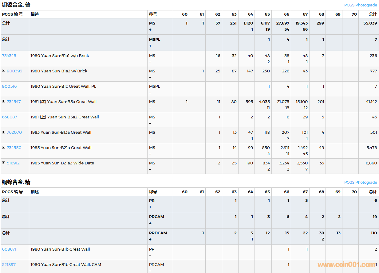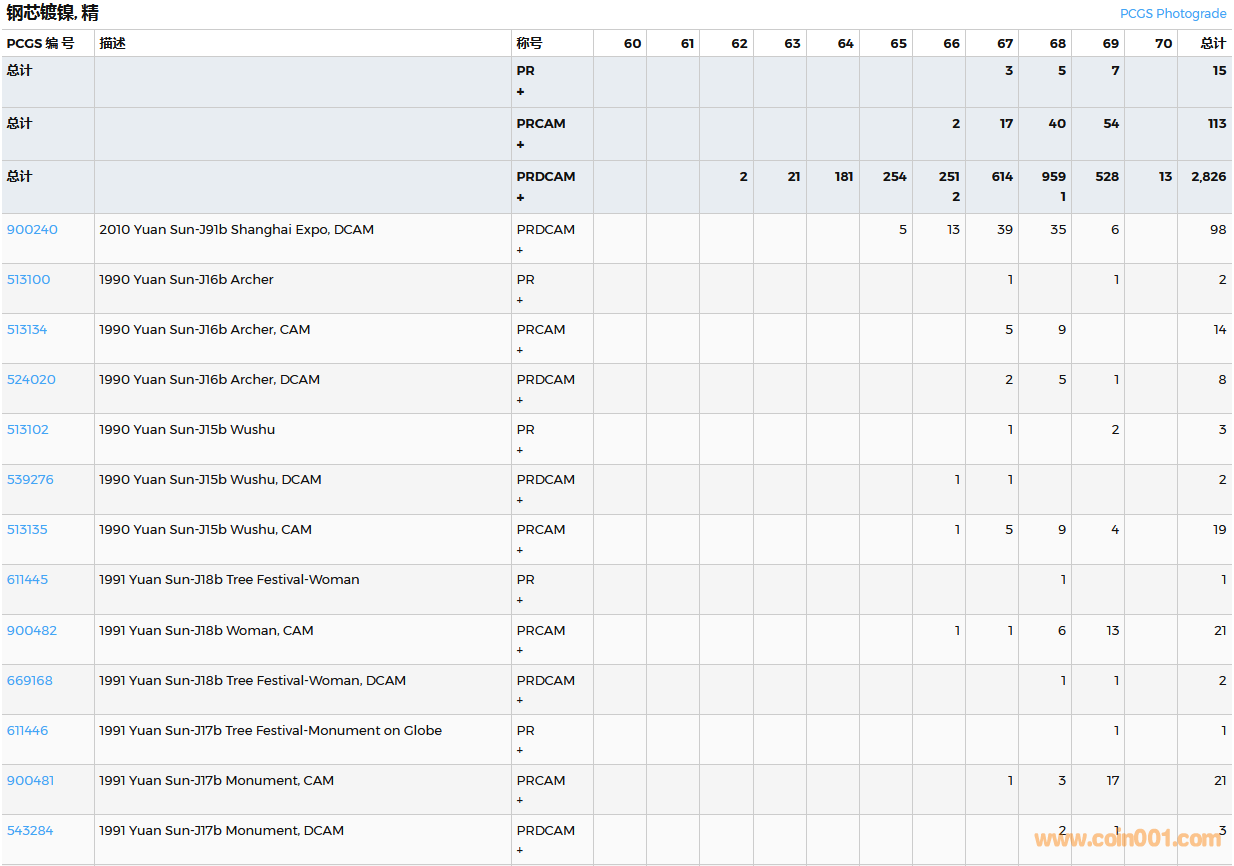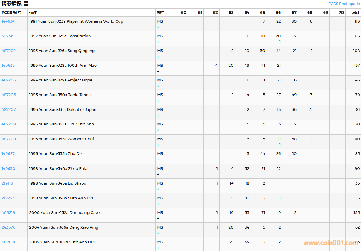 PCGS硬幣評(píng)級(jí)數(shù)量報(bào)告( ..