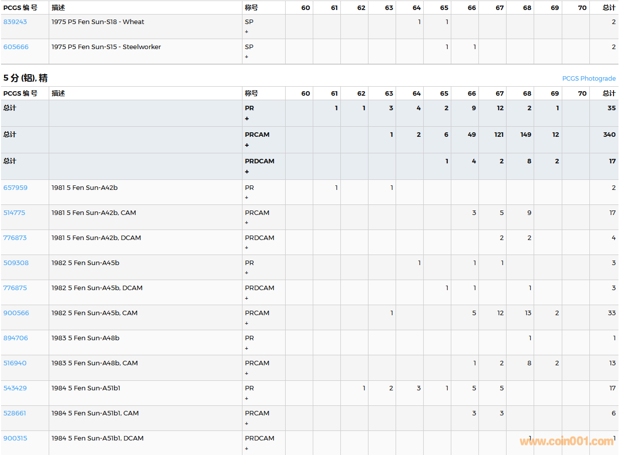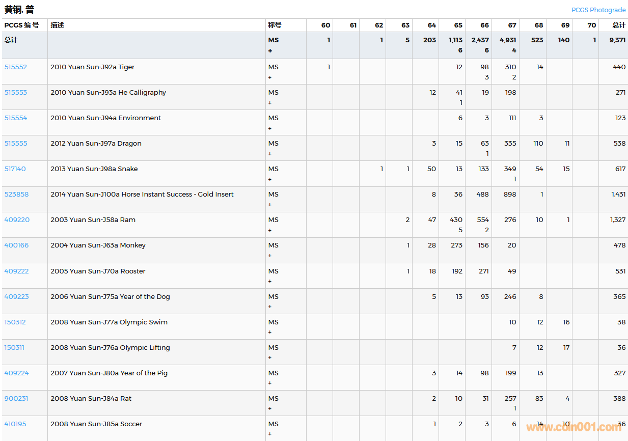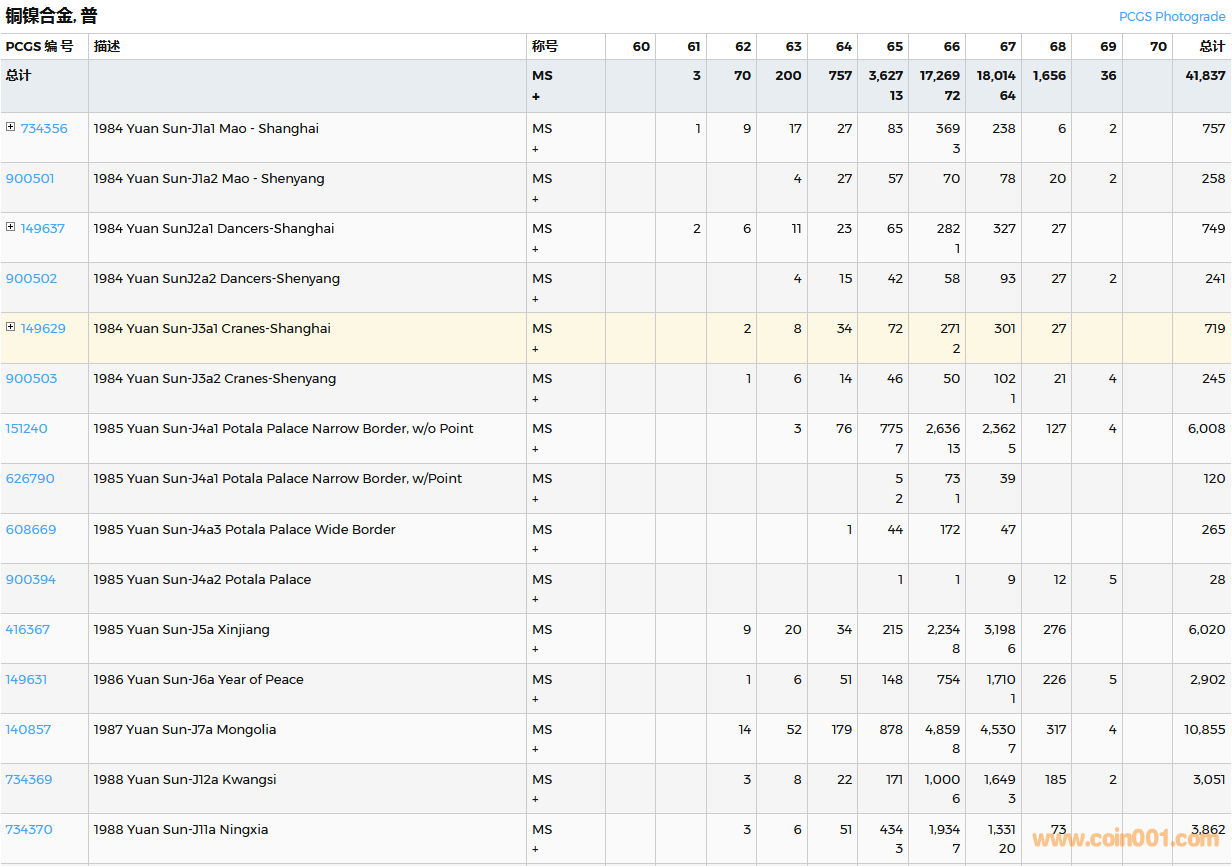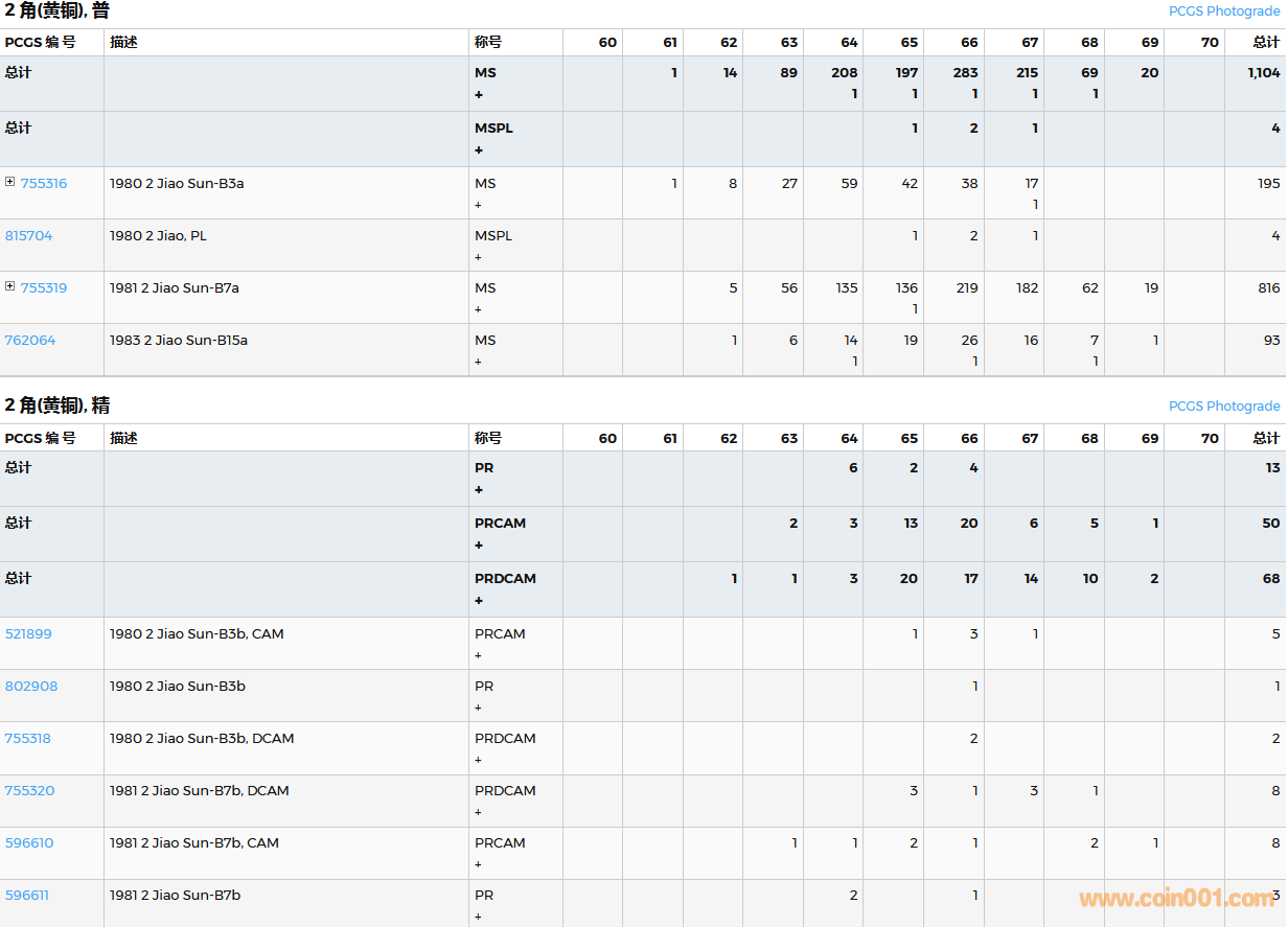 PCGS硬幣評(píng)級(jí)數(shù)量報(bào)告( ..