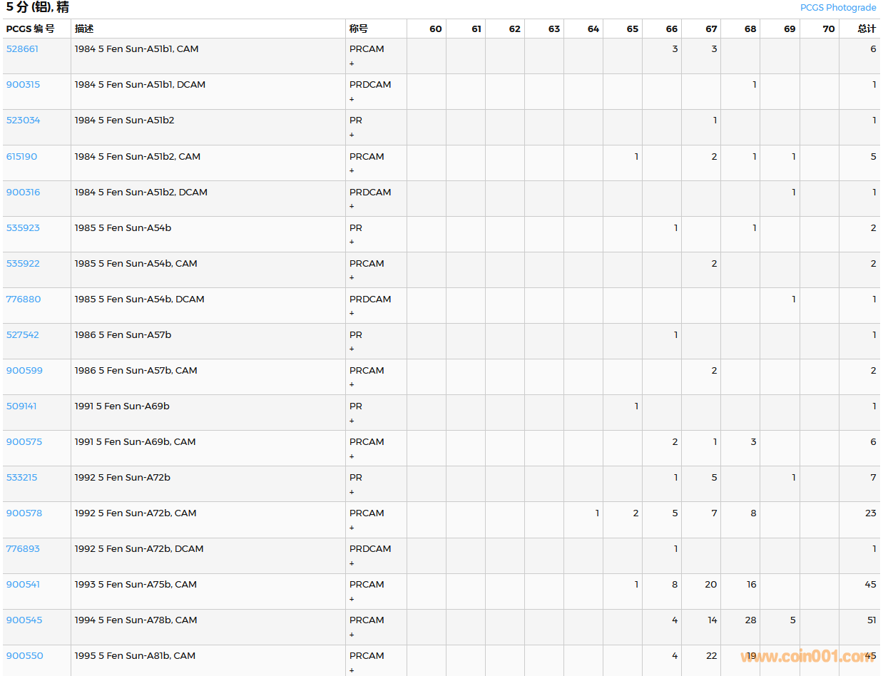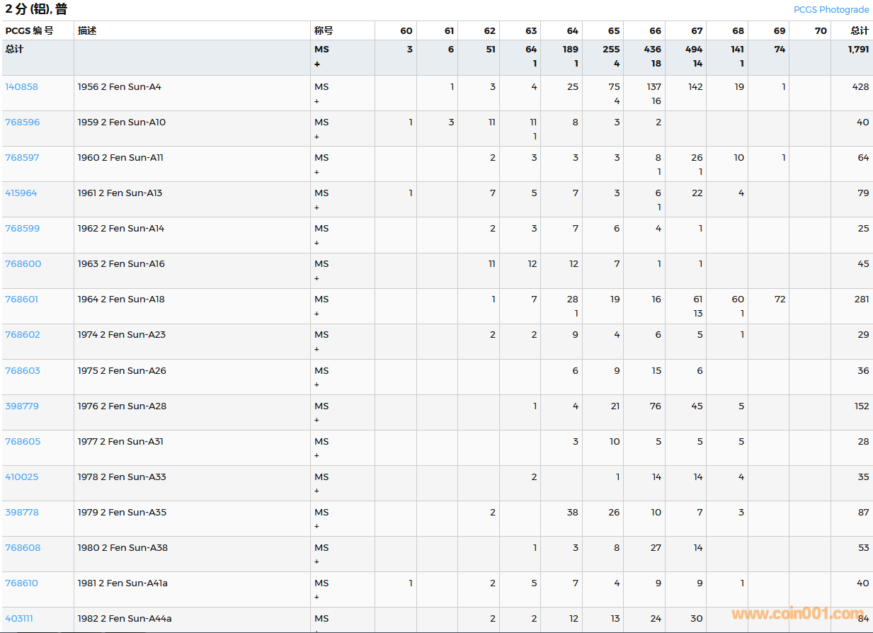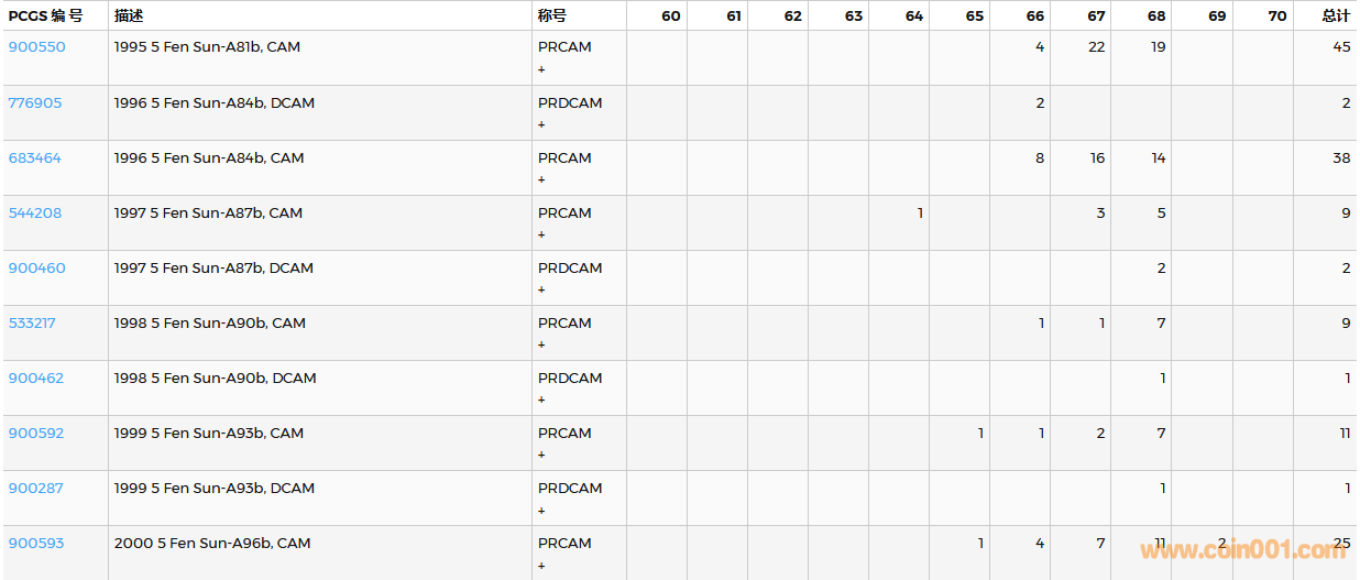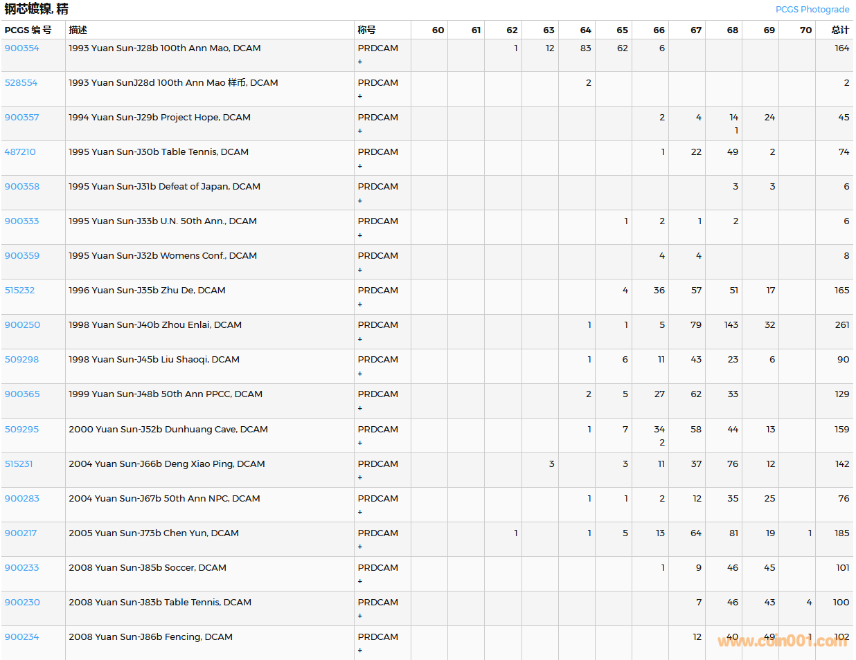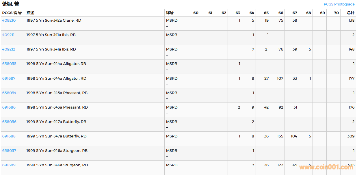PCGS硬幣評(píng)級(jí)數(shù)量報(bào)告( ..