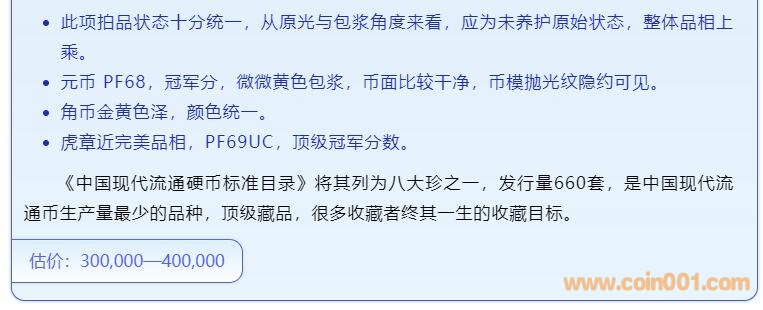 現(xiàn)代錢幣網(wǎng)歷時(shí)四年成功舉辦了11次大拍,共成交4887項(xiàng)拍品,總成交額7171萬元。春秋大拍屢次打破中國(guó)現(xiàn)代流通硬幣拍賣紀(jì)錄,大幅提高了現(xiàn)代錢幣的收藏地位,推動(dòng)了錢幣收藏事業(yè)的發(fā)展。
