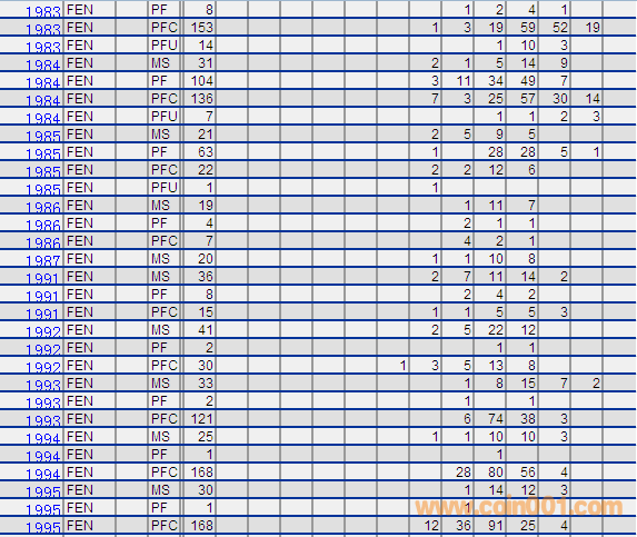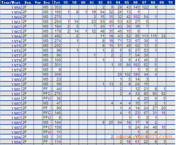 NGC硬幣評級分?jǐn)?shù)分布 ..