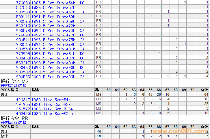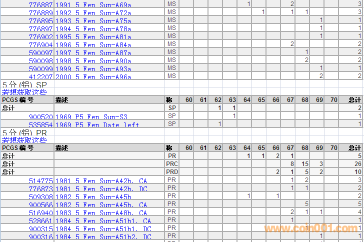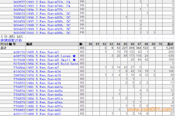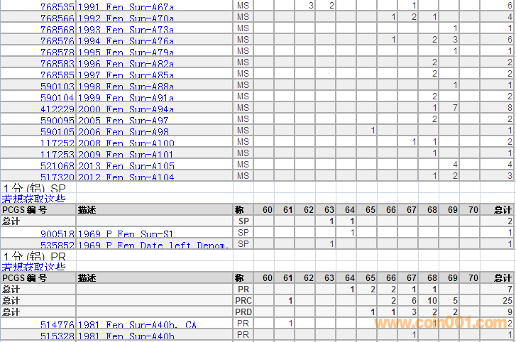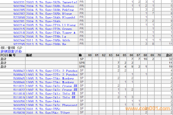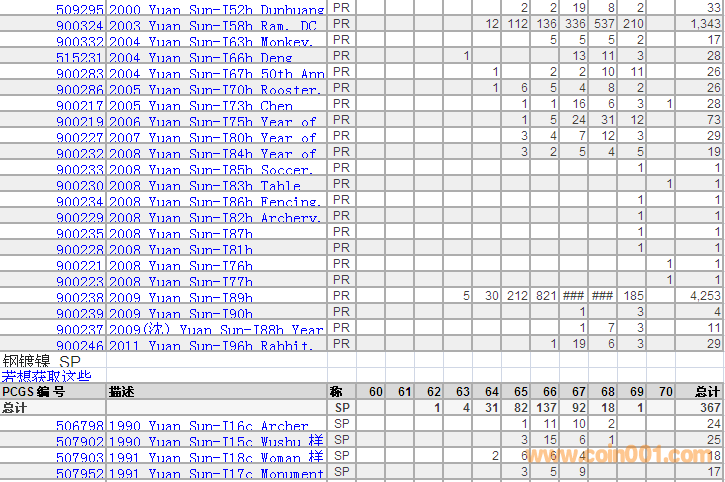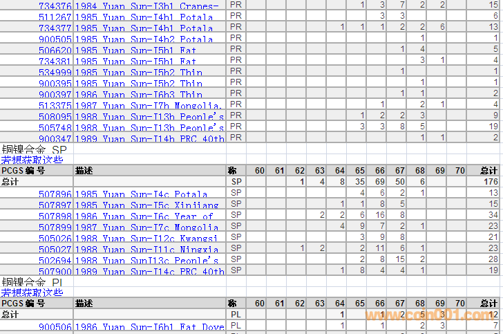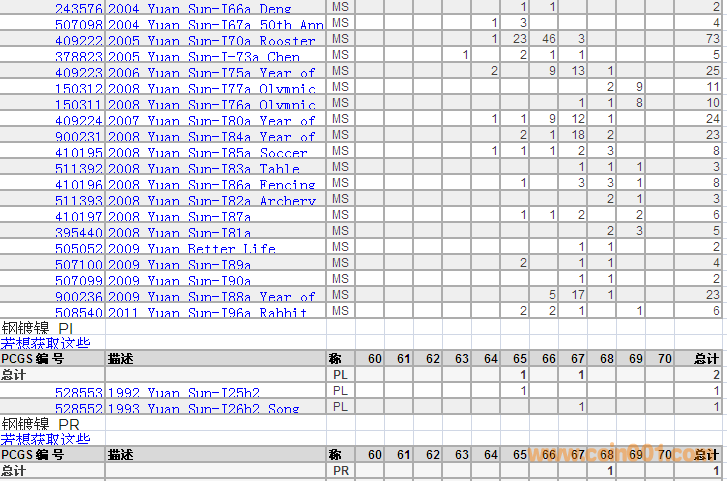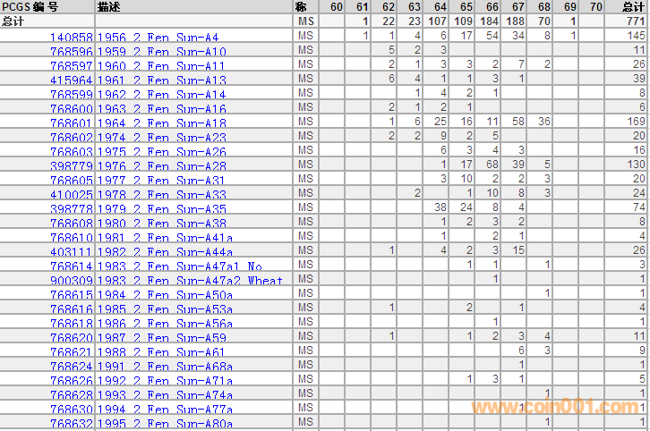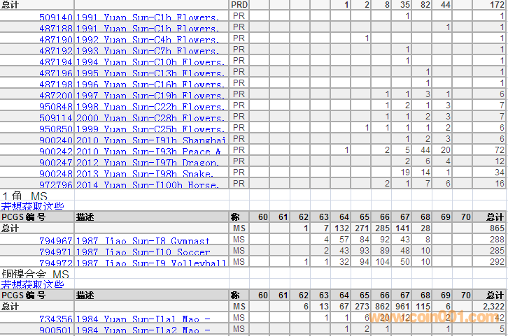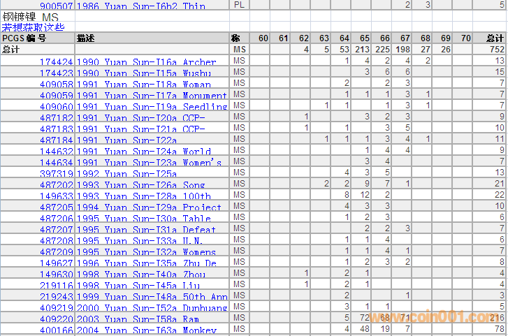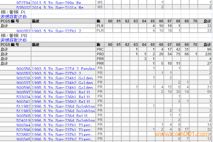 PCGS硬幣評級(jí)分?jǐn)?shù)分布 ..