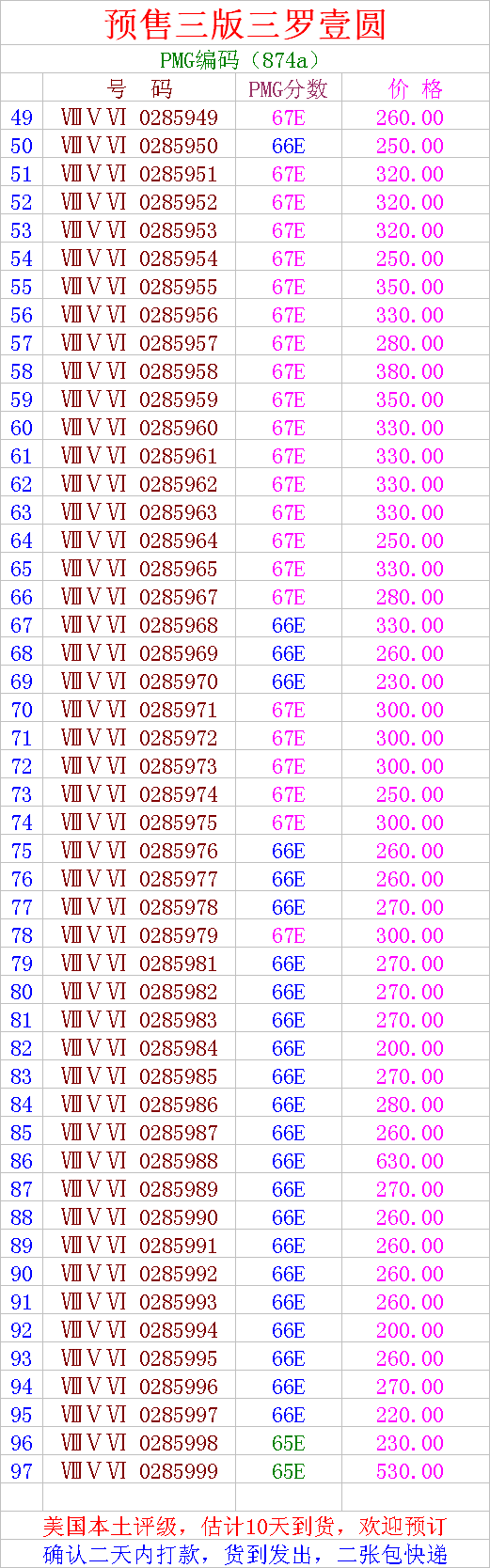引用 引用第6樓夏日云于2017-06-11 23:04發(fā)表的 :聯(lián)系確認(rèn)67分0385961,962,963三枚