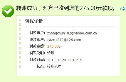 引用 引用第9樓阿良于2013-01-25 18:52發(fā)表的 : 款已付支付寶,請查收。謝謝。
