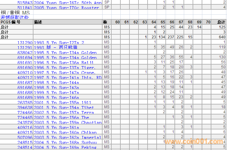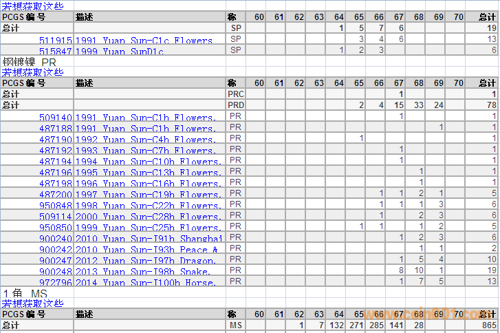 PCGS硬幣評(píng)級(jí)分?jǐn)?shù)分布 ..