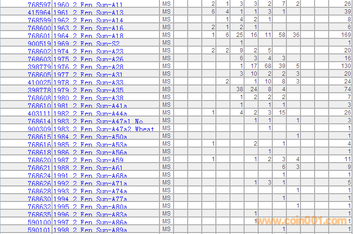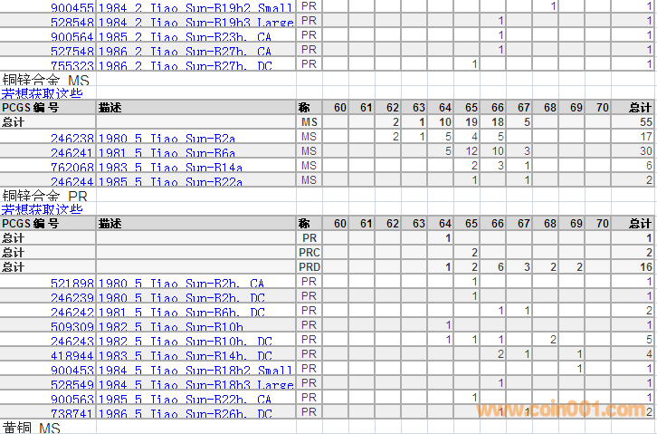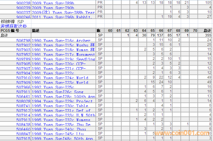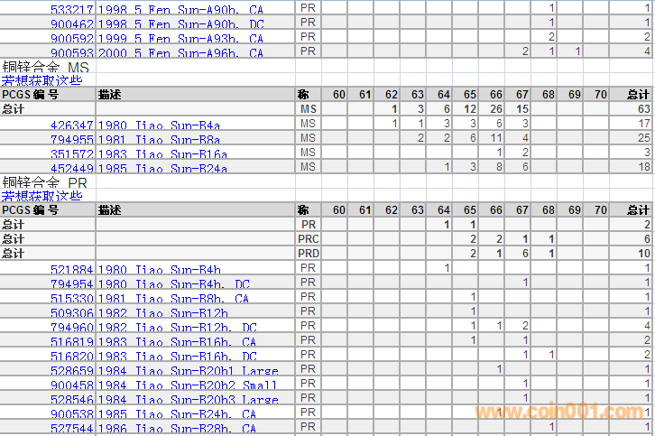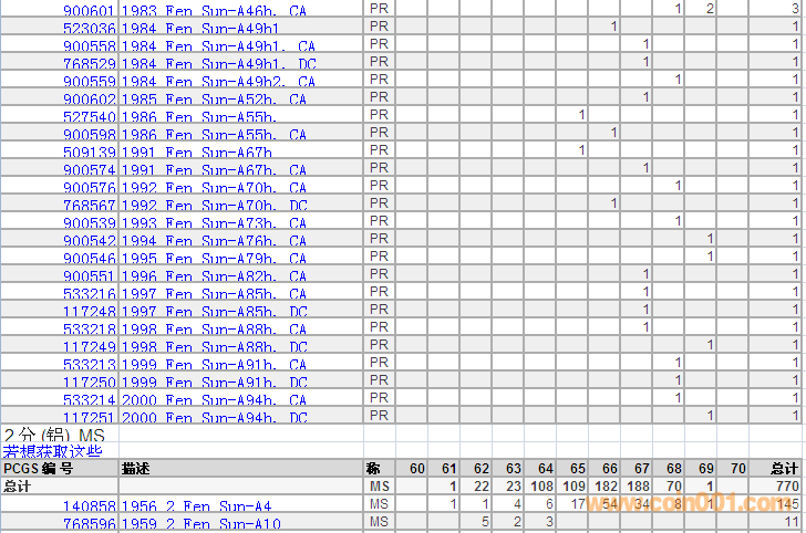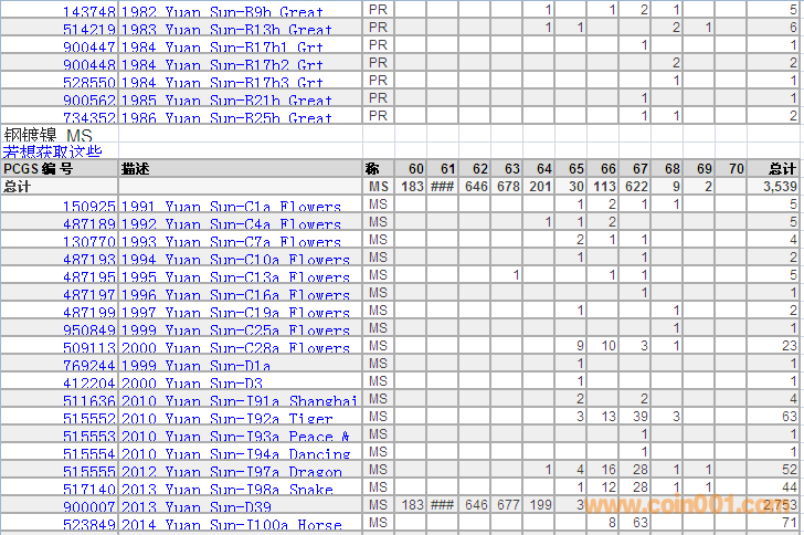 PCGS硬幣評級分?jǐn)?shù)分布 ..