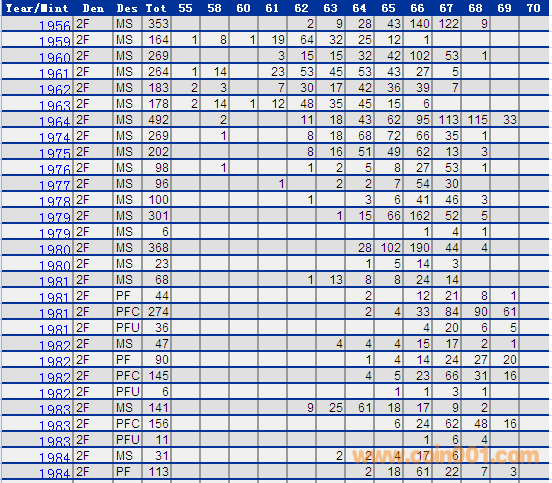 NGC硬幣評級分?jǐn)?shù)分布 ..