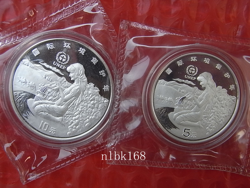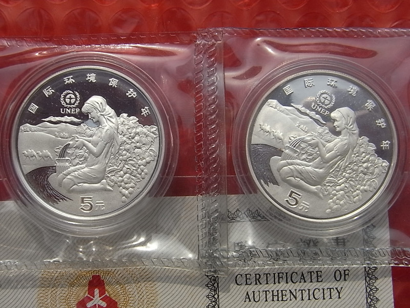 另外有普92年聯(lián)合國環(huán)境年精制銀幣 (兩種版本)各一枚原塑封帶原證書 兩枚一起走2000包EMS 第2圖是精普對比
