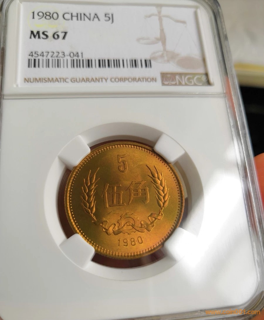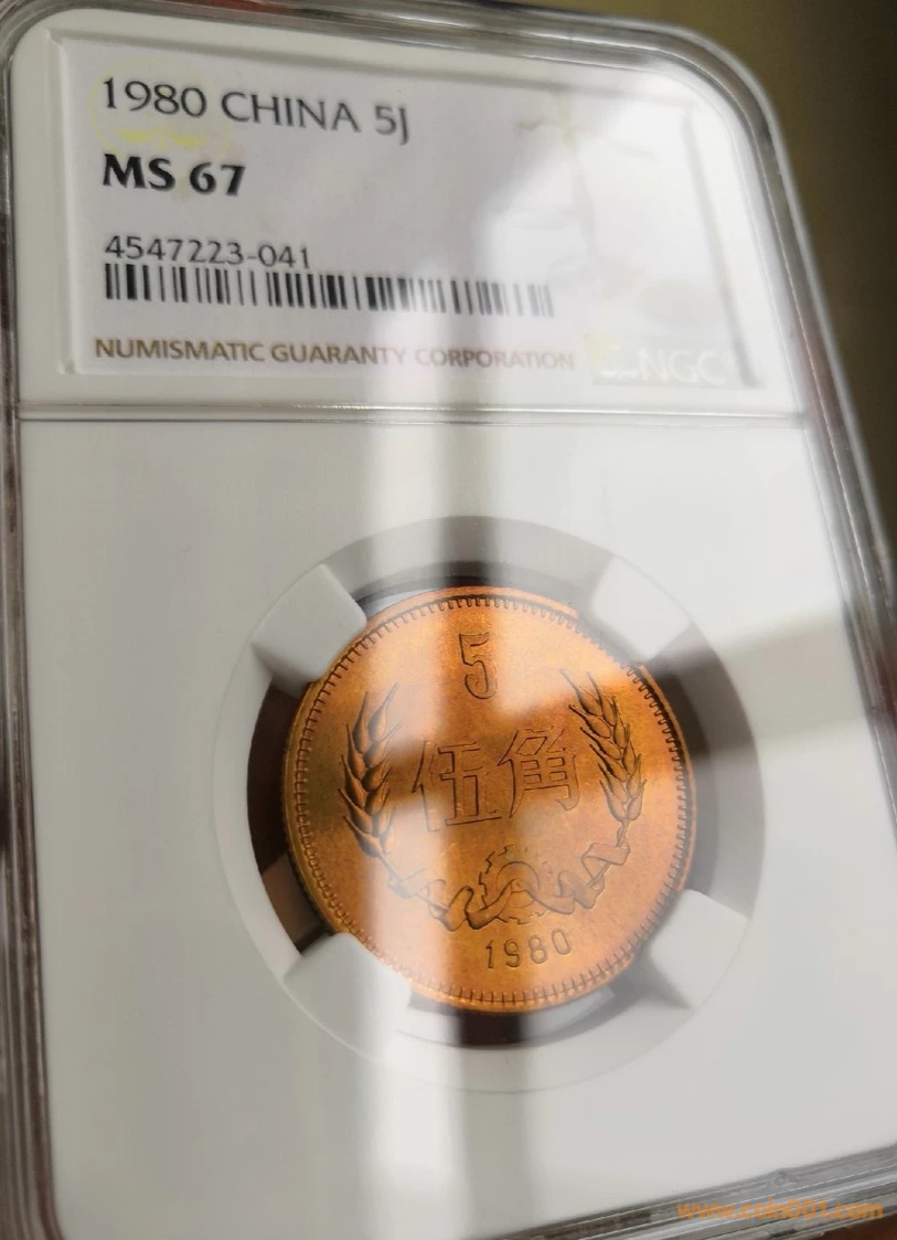 出1枚80年紅銅5角NGC67分
