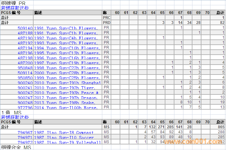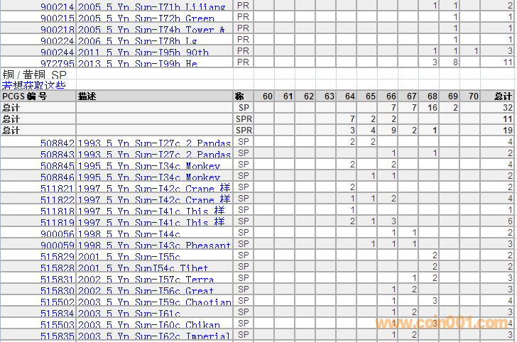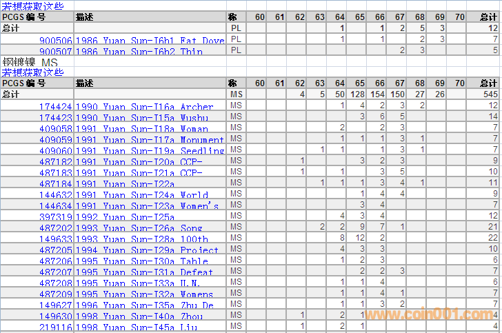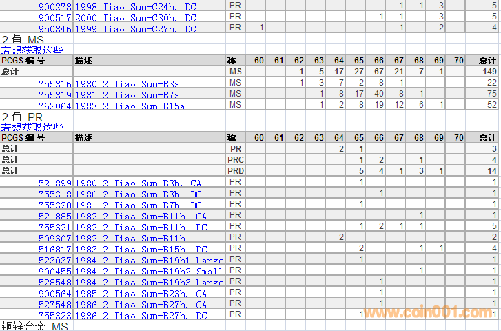 PCGS硬幣評(píng)級(jí)分?jǐn)?shù)分布 ..