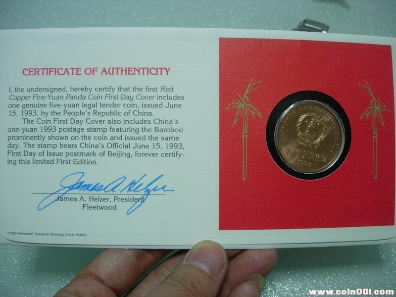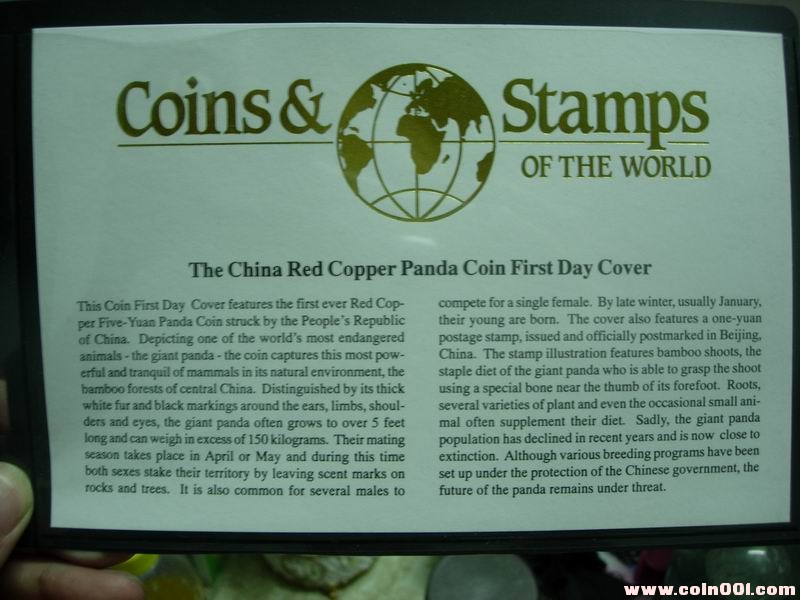 竹子郵票的93熊貓銅幣 ..