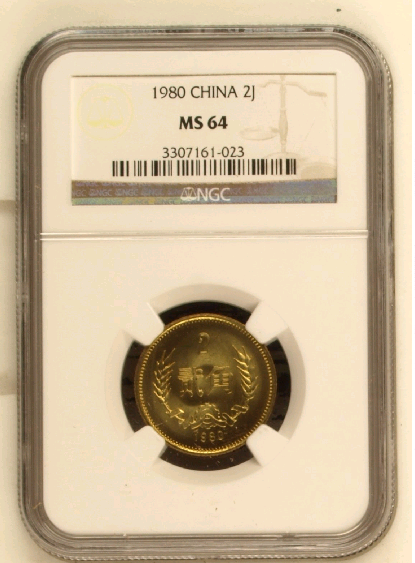 1980年2角 MS64編號3307161-023,價480元(此枚幣幾乎看不到什么劃痕,為什么只有64分俺也不知道)