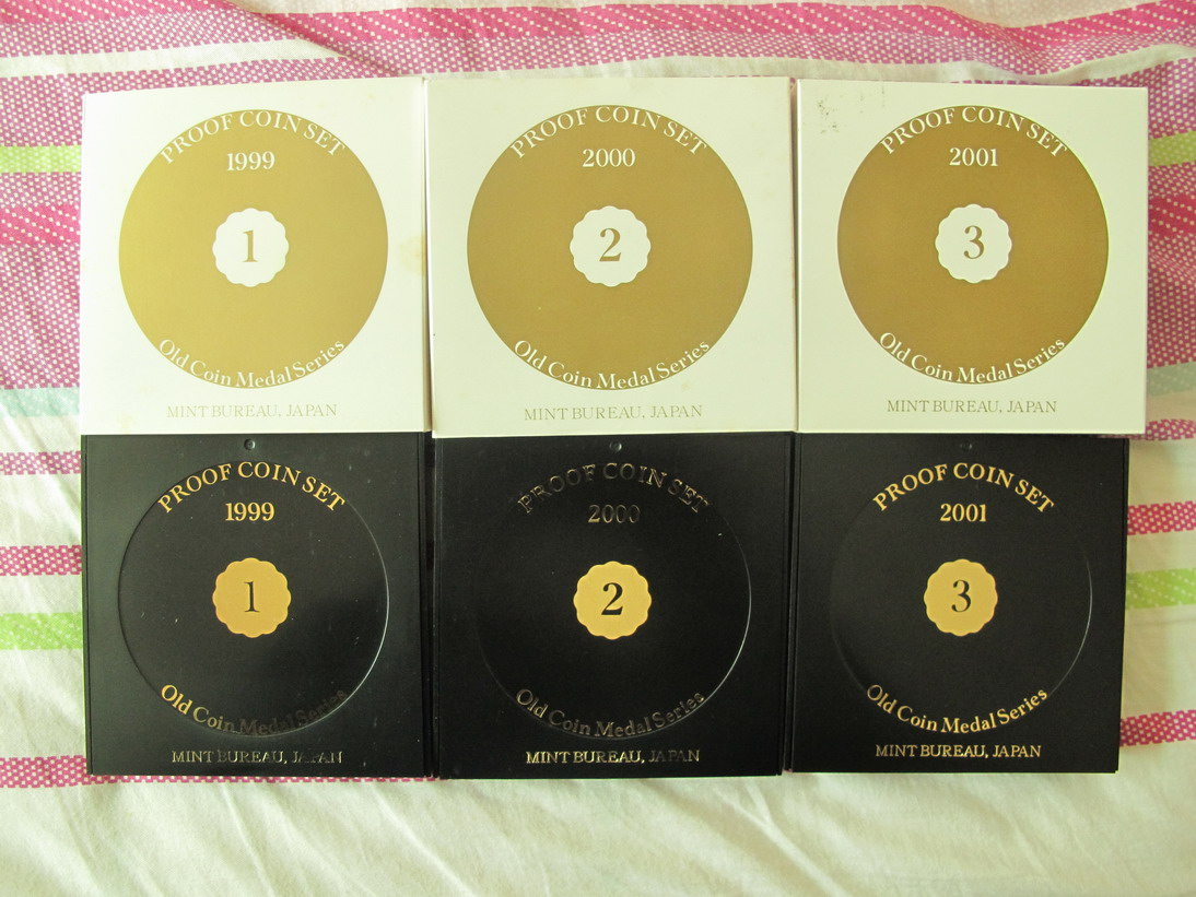 3、1999-2001年老硬幣紀(jì)念章1-3系列日本精制套幣(1-3為一組俗稱圓盒版帶純銀章) 900/組 有2組