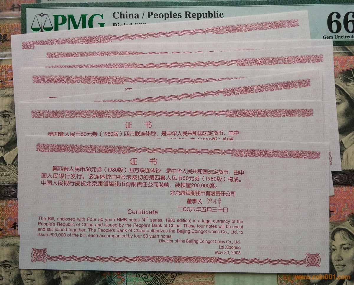 ◆四版幣 8050四連體鈔 ..