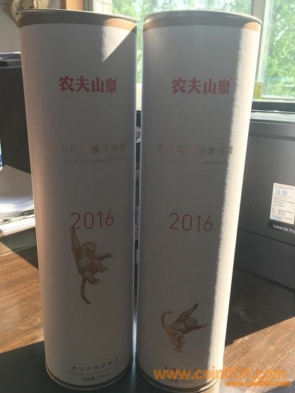 出農(nóng)夫山泉限量紀(jì)念版2016金猴鬧春750ml玻璃瓶水套裝(兩瓶裝)一套!