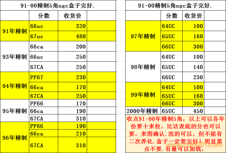 收點(diǎn)91-00年精制5角,