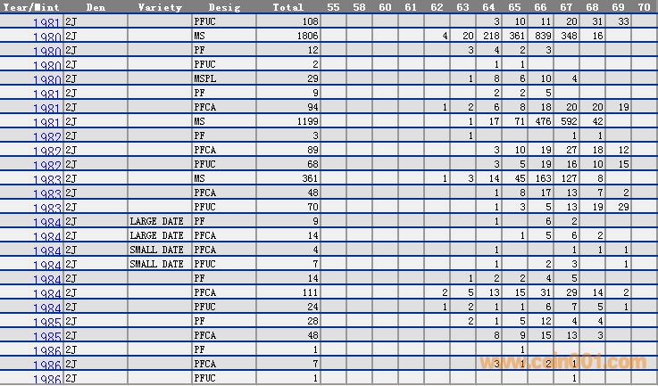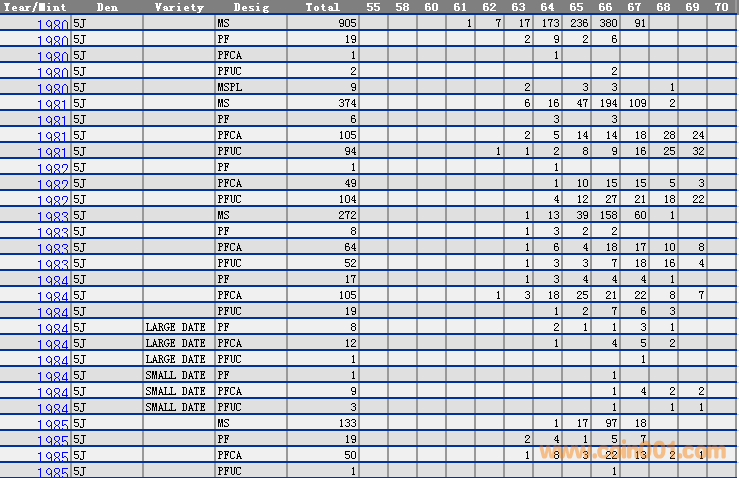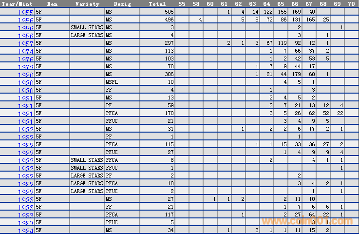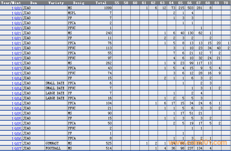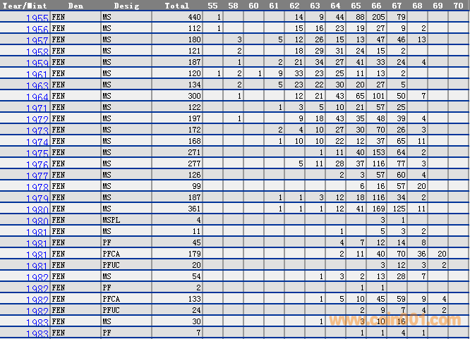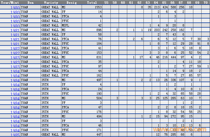 NGC硬幣評級分數(shù)分布 ..