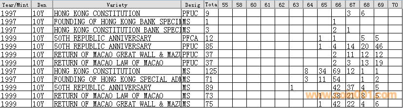 NGC硬幣評級分?jǐn)?shù)分布 ..