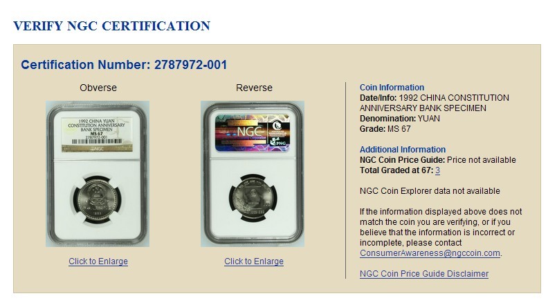 出NGC67分憲法樣幣
