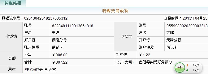 引用 引用第7樓尼莫于2013-04-24 22:22發(fā)表的 : 萬總,招商銀行已匯款2296,發(fā)簽名檔,順豐到付,謝謝!