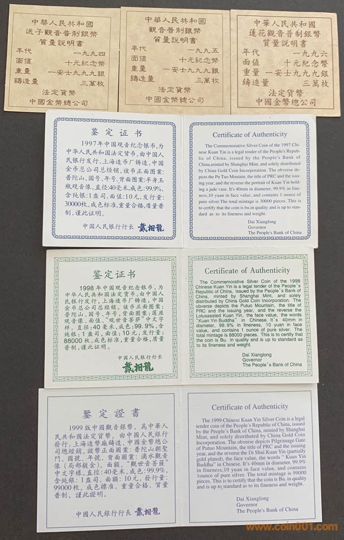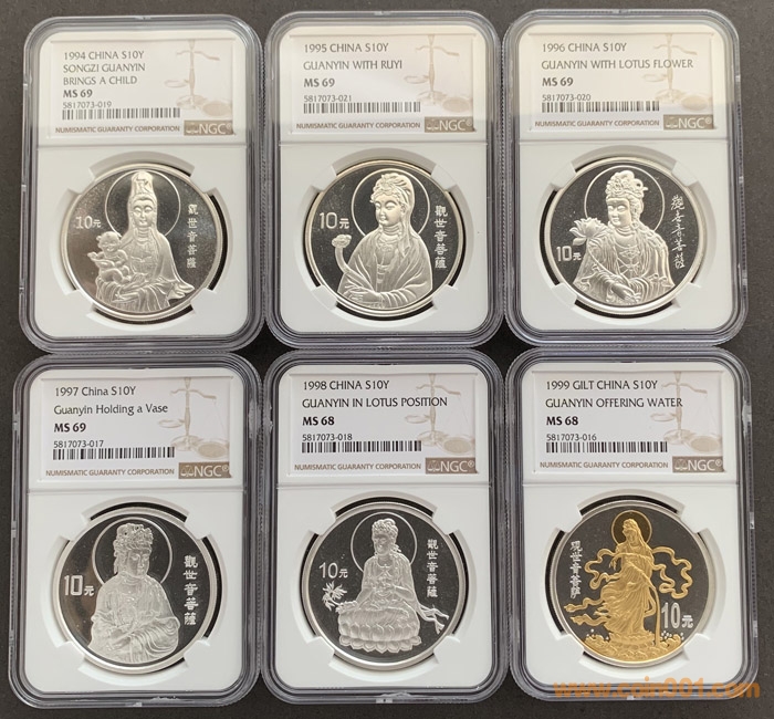 1994-1999年觀音銀幣5枚 ..