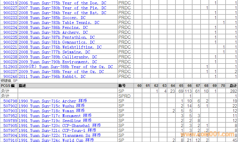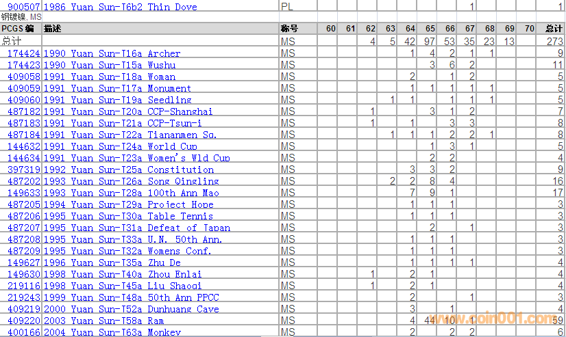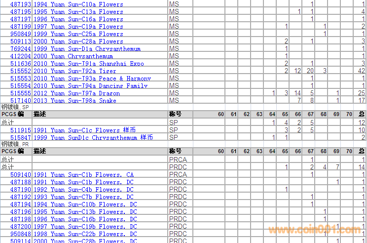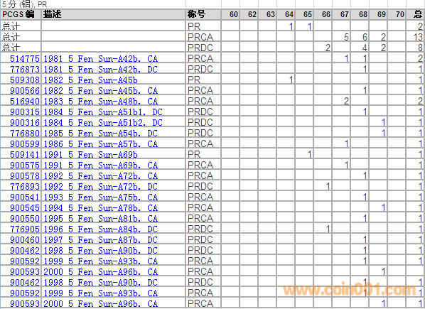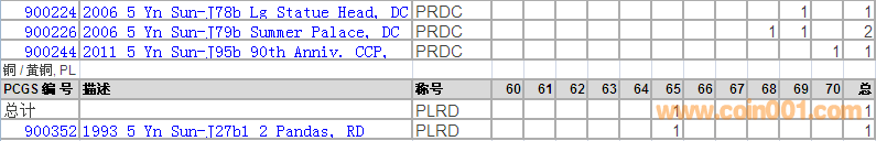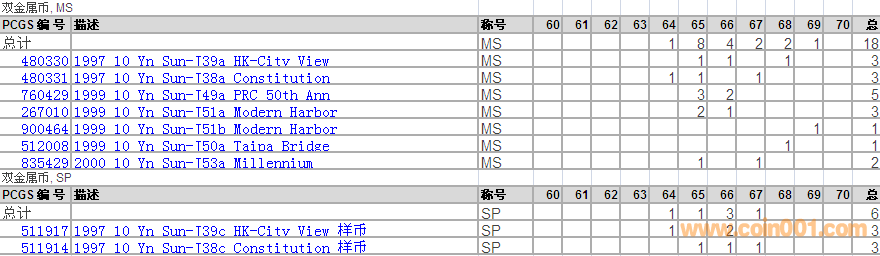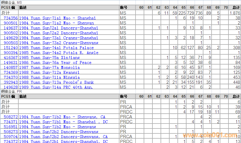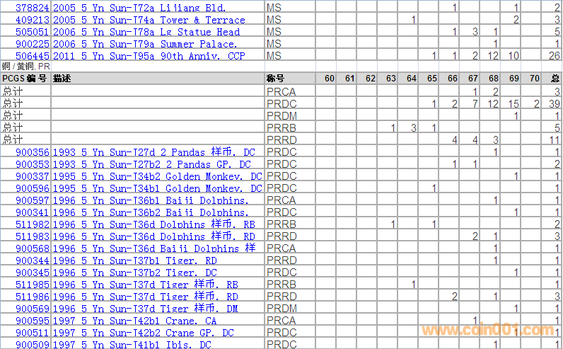PCGS硬幣評級分數(shù)分布 ..