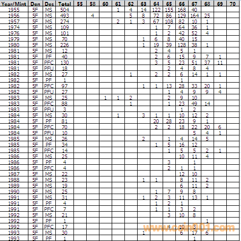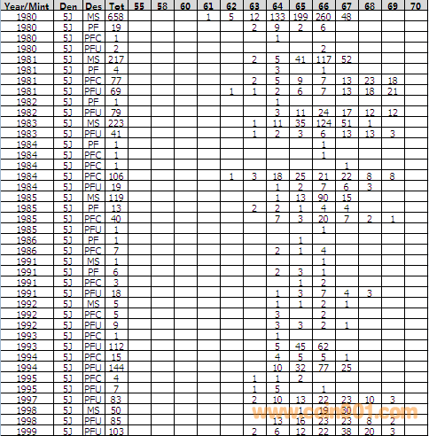 NGC硬幣評(píng)級(jí)分?jǐn)?shù)分布 ..