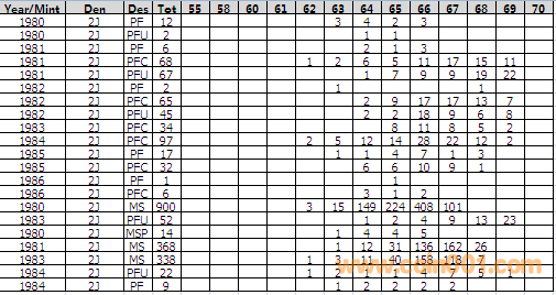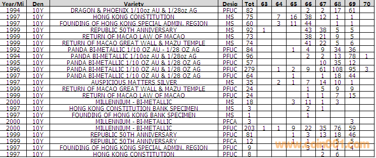 NGC硬幣評級分數(shù)分布 ..