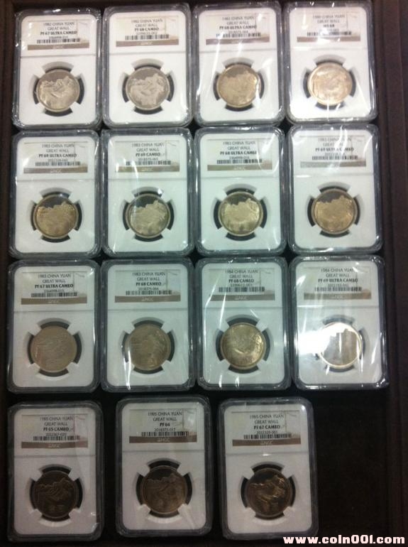 3.81、82、83年三枚精制長城一元幣,分?jǐn)?shù)都是PF67UC。6666元一套(只有一套)