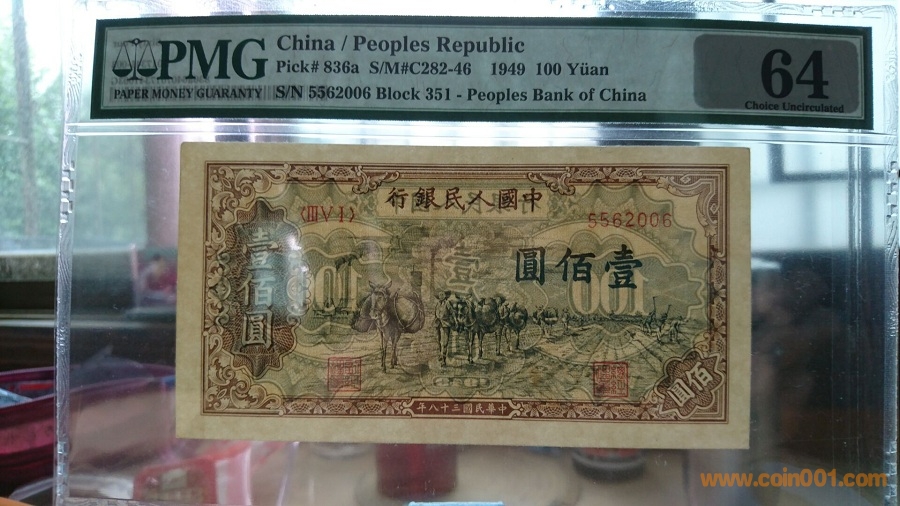 一版100元駝運(yùn)美國PMG本土評級PMG64分,評級幣編號為836a,全新原票送評,因圖案不對稱嚴(yán)評給了64分,油墨濃厚鮮艷,票面細(xì)節(jié)紋路清晰,紙張好,好號全程無47諧音:吾吾順愛動(dòng)動(dòng)順。